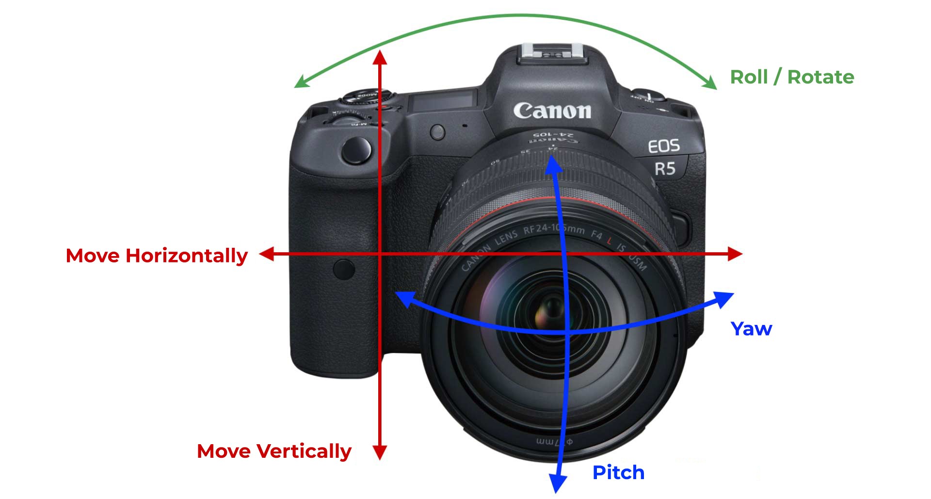 With EF and EF-S lenses, there is a "division of labour" between the different stabilisation methods. To simplify, let's assume that an EF lens uses a non-hybrid IS (see Hybrid IS below for a definition). This version of the IS is built into the vast majority of EF lenses with IS: The lens-based IS stabilises the "pitch" and "yaw" movements. IBIS stabilises when the camera is moved (parallel) right/left and up/down (X/Y axis) and when "rolling".